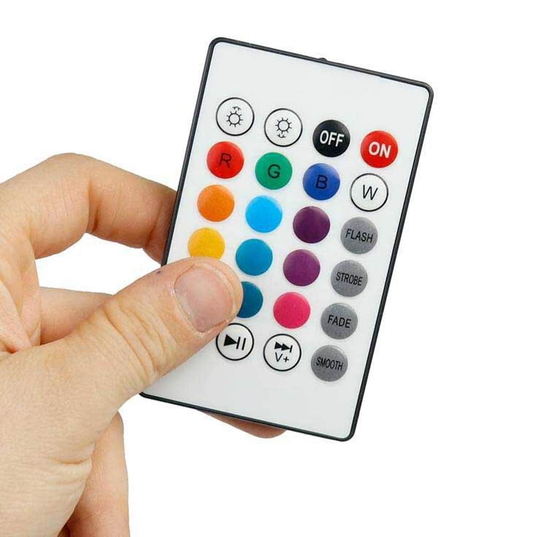 ریموت کنترل چندمنظوره این محصول این امکان را میدهد تا رنگ نور محیط را بسته به سلیقه یا حال و هوای خود، تغییر دهید (سفید، زرد، یا افکتهای رنگی و Multi Color RGB). همچنین به آسانی میتوانید قدرت نور، پخش موزیک، جلو یا عقب بردن آهنگها و حتی کم و زیاد کردن صدا را مدیریت کنید.