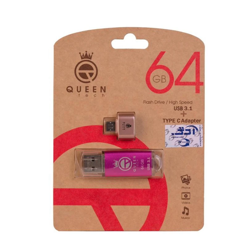 فلش دوکاربره کوئین تک QUICK 64GB – USB 3.1 + Type-C با طراحی مقاوم