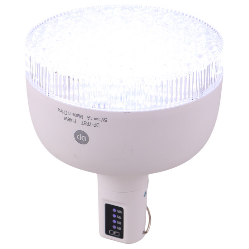 لامپ شارژی DP-7857 مجهز به نمایشگر میزان شارژ است که با چهار چراغ نمایشدهنده (۲۵، ۵۰، ۷۵ و ۱۰۰ درصد)، به شما کمک میکند همیشه از وضعیت باتری مطلع باشید. این ویژگی مانع از خاموش شدن ناگهانی لامپ و افزایش راحتی و اطمینان خاطر میشود. این مزیت بهویژه در فضای کمپینگ و قطعی برق بسیار کلیدی است.