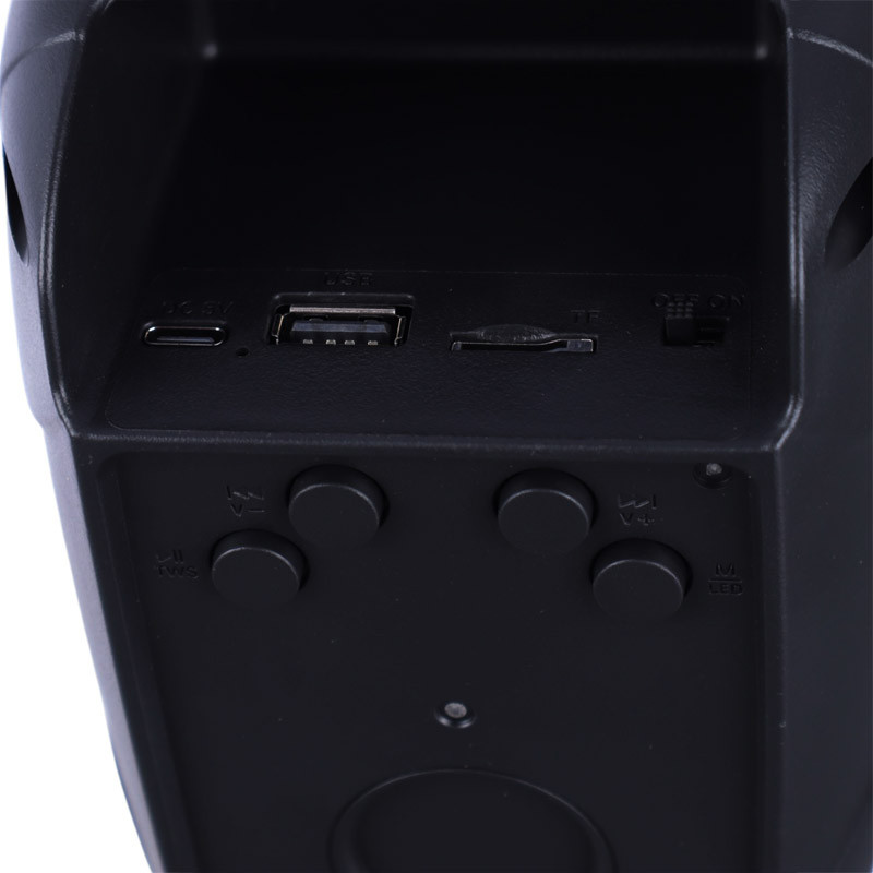 این اسپیکر با ابعاد جمعوجور (۱۶×۱۱×۹ سانتیمتر) و وزن فقط ۳۰۰ گرم، گزینهای ایدهآل برای حمل روزانه و سفر است. بدنهی آن از پلاستیک مقاوم ساخته شده که هم در برابر ضربه و هم فشارهای احتمالی مقاوم بوده و حس کیفیت را به کاربر منتقل میکند. وجود نورپردازی رنگی LED روی پنل اسپیکر، علاوه بر زیبایی ظاهری، فضای دلنشین و چشمگیری در مهمانیها و جمعهای خودمانی ایجاد میکند.